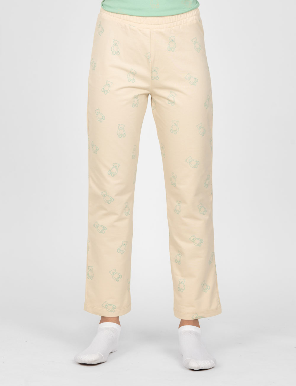 شلوار زنانه چاپدار خرس زیبا، با طراحی ملایم و رنگ کرم، گزینه‌ای جذاب و راحت برای استایل‌های روزمره است. چاپ ظریف خرس‌های کوچک روی شلوار، حس خوشایند و دل‌نشینی به این مدل داده و آن را به انتخابی مناسب برای فصول مختلف تبدیل کرده است. جنس نرم و تنفس‌پذیر این شلوار، راحتی کامل را برای استفاده در طول روز فراهم می‌آورد.