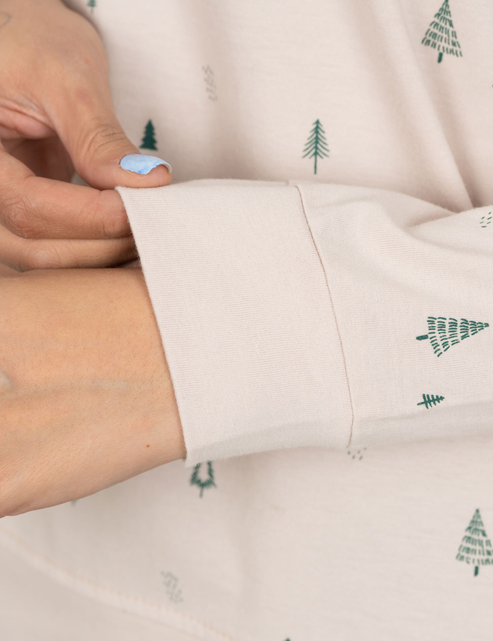 بلوز زنانه چاپدار طرح کریسمس، با طراحی دلنشین و رنگ کرم، انتخابی شاد و مناسب برای فصول سرد است. چاپ درختان کریسمس با جزئیات زیبا و رنگ سبز روی سطح بلوز، جلوهای زیبا و پرانرژی ایجاد کرده است. جنس پنبهای نرم و راحت این بلوز، حس خوشایندی را در تمام طول روز فراهم میکند و برای استفاده در تمام فصول مناسب است.