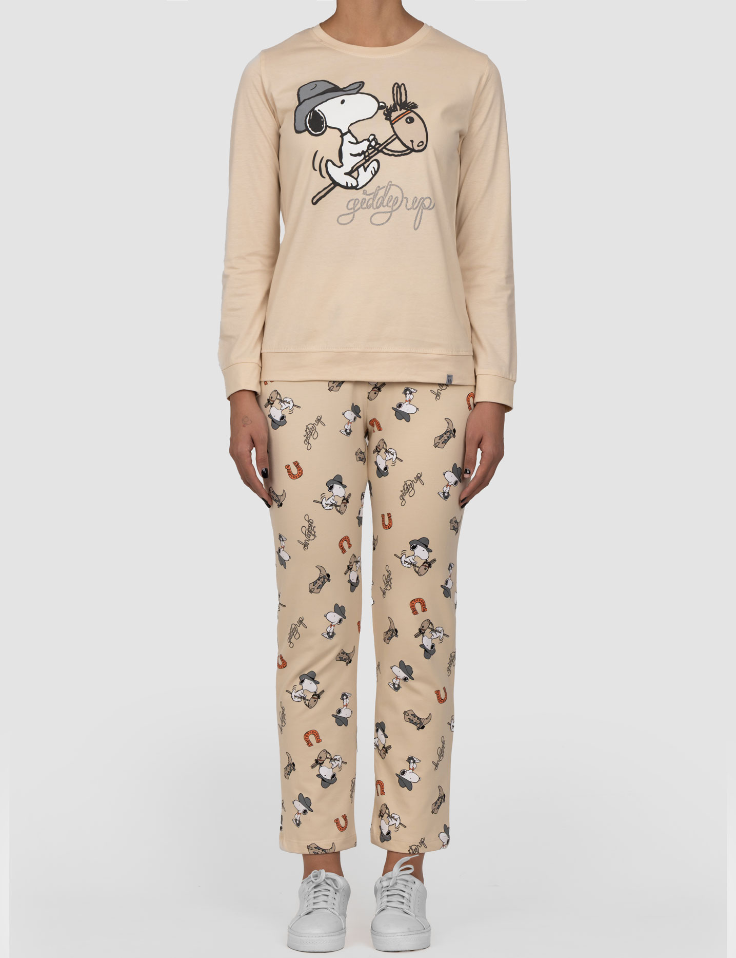 بلوز زنانه چاپدار اسنوپی اسب‌سوار از برند هیوان با طرح بامزه و خاص اسنوپی روی زمینه‌ی کرم، انتخابی دل‌نشین برای استایل‌های خانگی و روزمره است. پارچه‌ی نرم و لطیف پنبه‌ای آن باعث می‌شود در تمام فصول، به‌ویژه پاییز و زمستان، احساس راحتی و گرما داشته باشید.