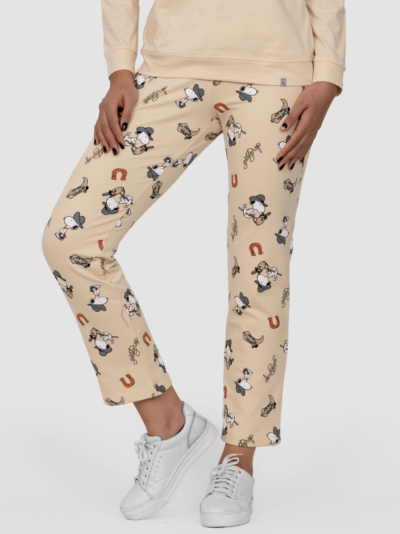 بههمراه بلوز چاپدار اسنوپی اسبسوار از همین مجموعه، یک ست جذاب و هماهنگ بسازید که هم برای استراحت و هم برای دورهمیهای دوستانه در خانه فوقالعاده است.