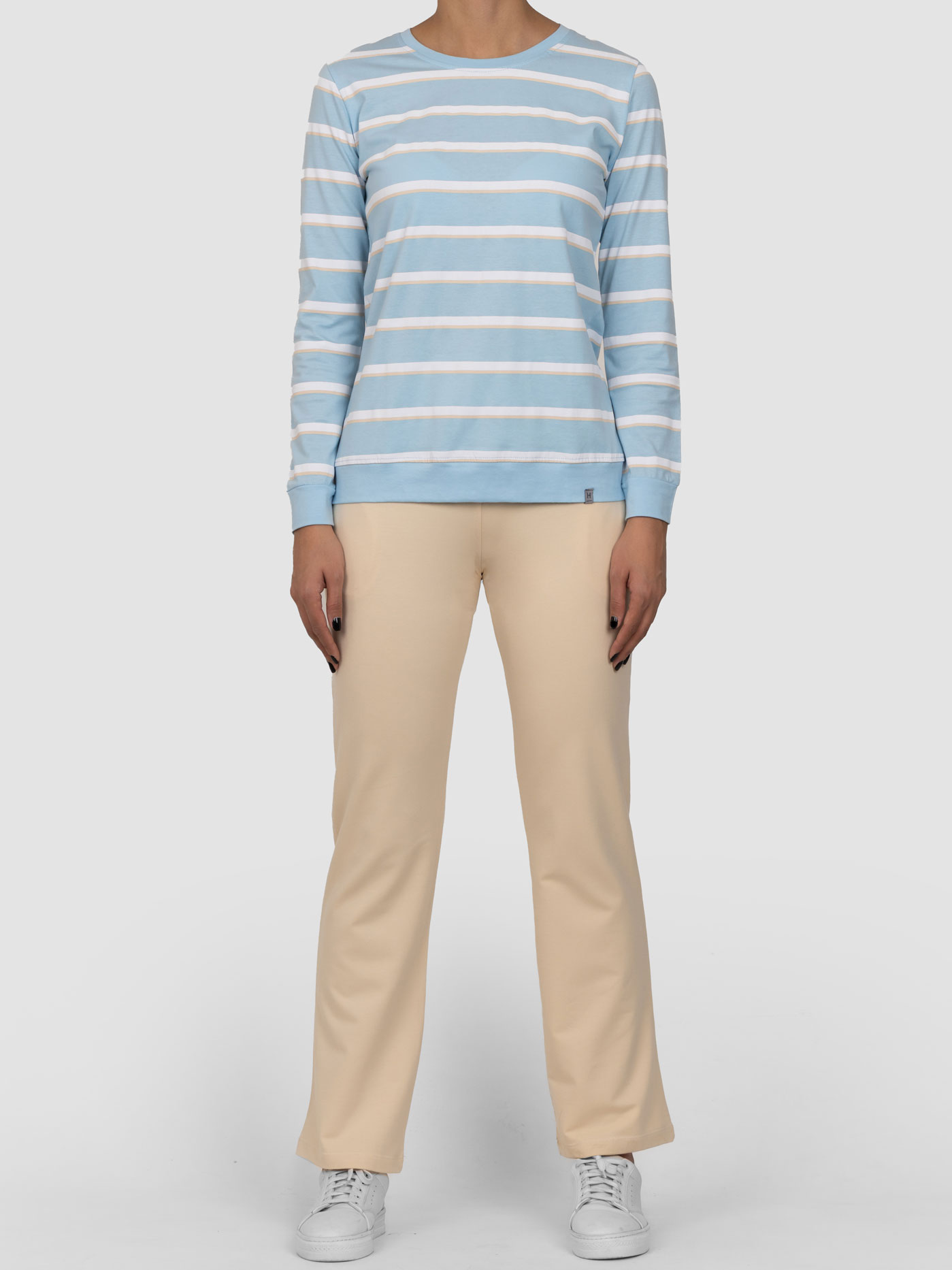 با بلوز راهراه ژیکان از همین مجموعه ست کنید تا یک ترکیب روشن، هماهنگ و بسیار لطیف برای روزهای سرد و معتدل داشته باشید.